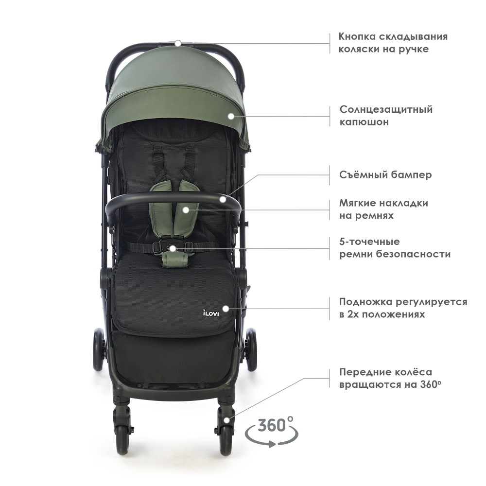 Легкая, быстрая и подвижная прогулочная коляска iLovi Folki для увлекательных и беззаботных прогулок.